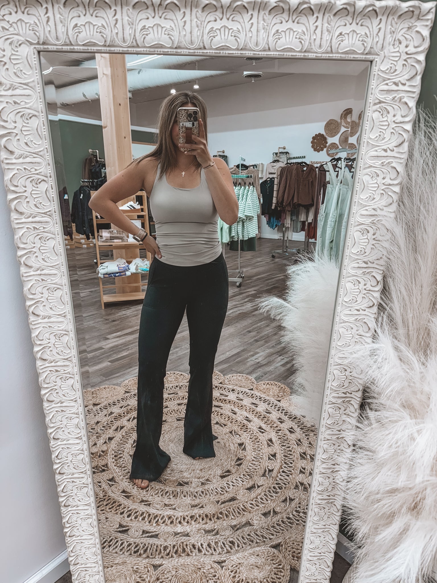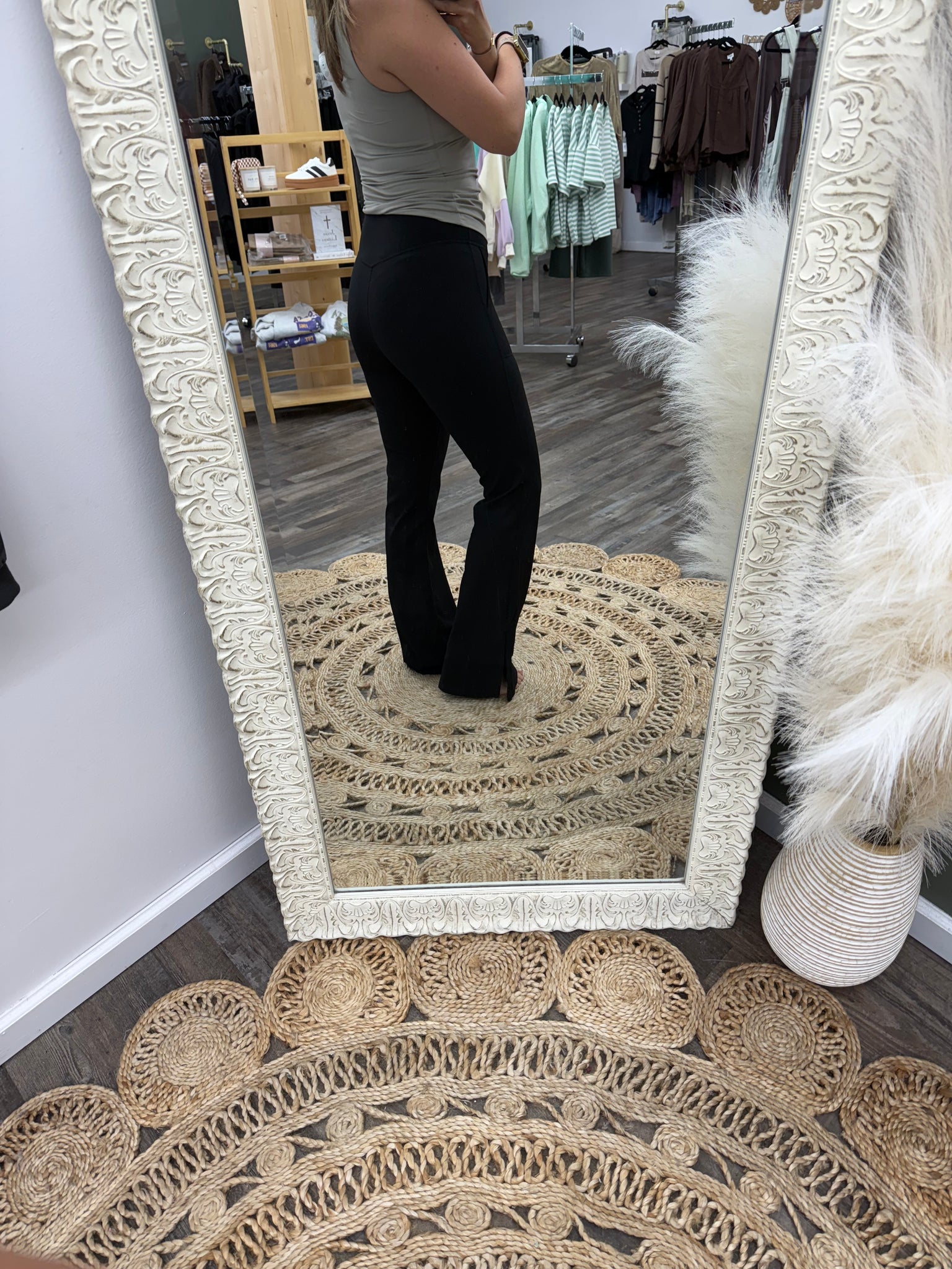 - Nylon Rib Fabric - Butter Smooth - V Waist / Crossover - Flared / Bell Bottom - Bottom Side Slit