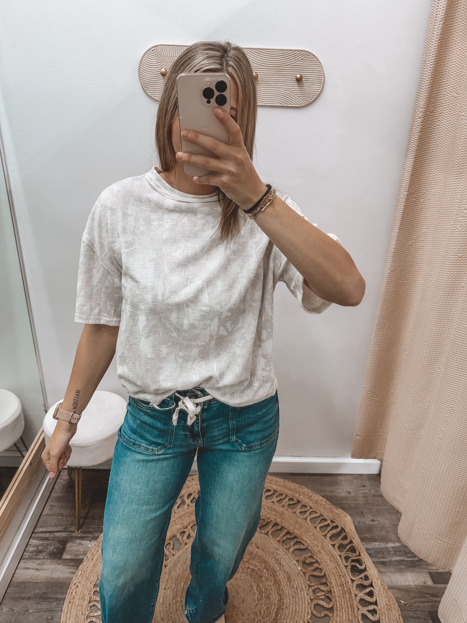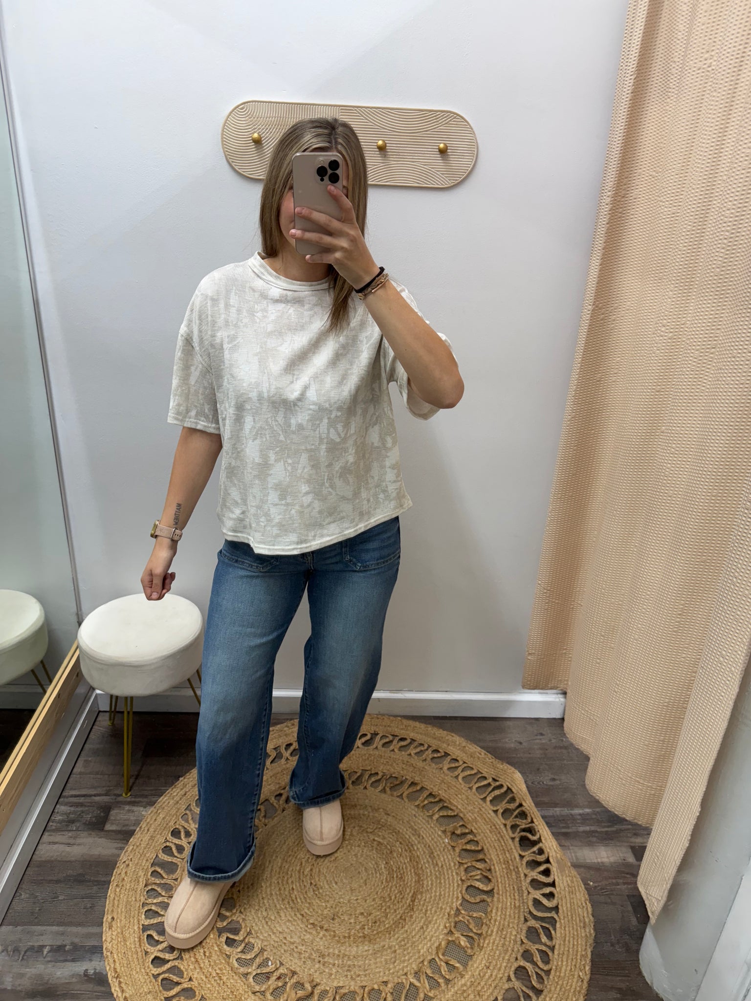 🌿 Effortless and versatile, this white camo ribbed tee is the perfect everyday staple.