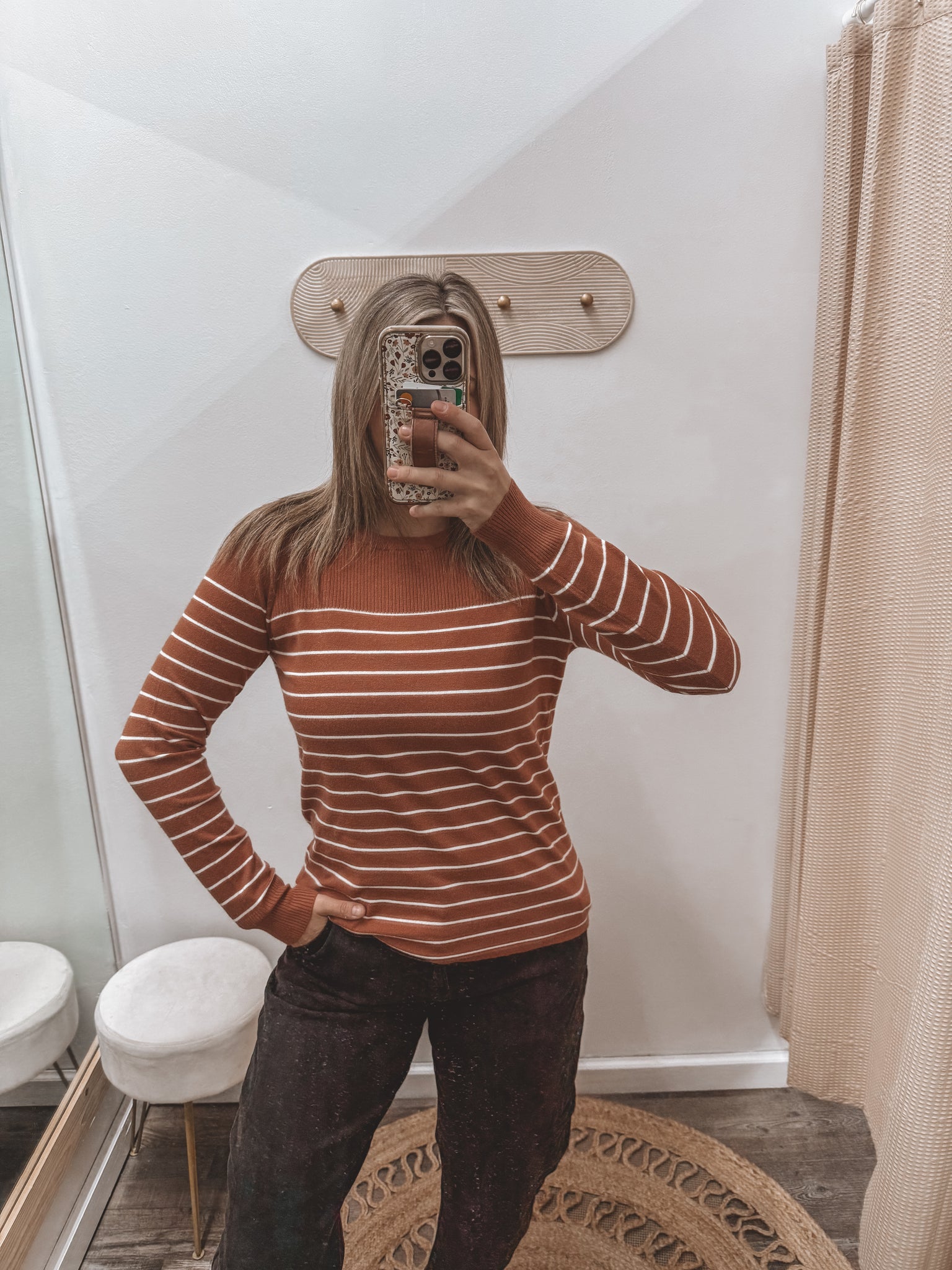 CREW NECK, LONG SLEEVE, SUPER SOFT, STRIPED PULLOVER SWEATER
