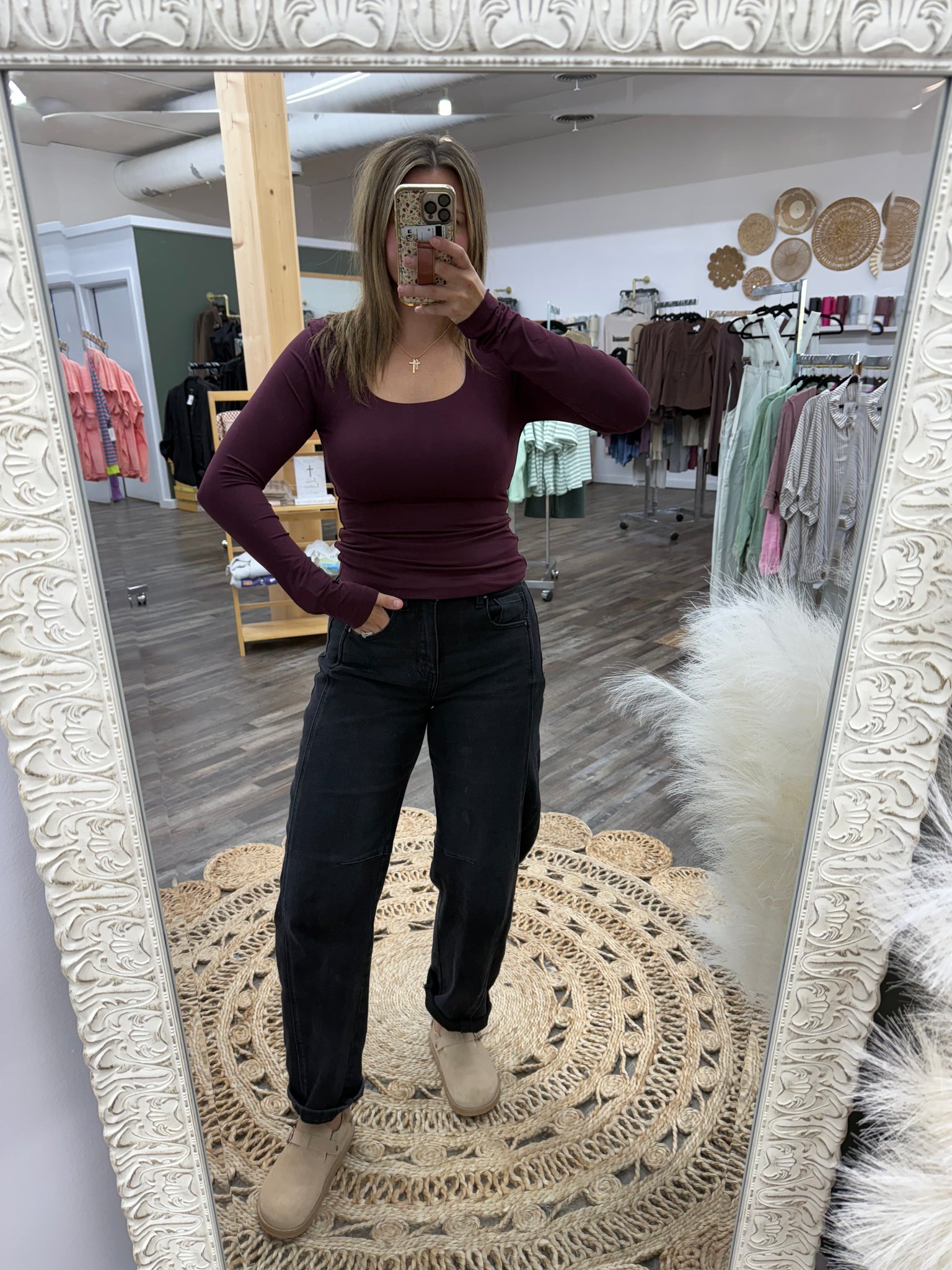 crafted from recycled butter-soft fabric for a second-skin feel. With 4-way stretch and a doubled layer to prevent see-through, this top is perfect for layering with other clothes. Enjoy eco-friendly comfort and versatile style all day long. Features: - Recycled butter soft fabric - 4-way stretch - Long sleeve - Slim fit - Double layer - Square neckline