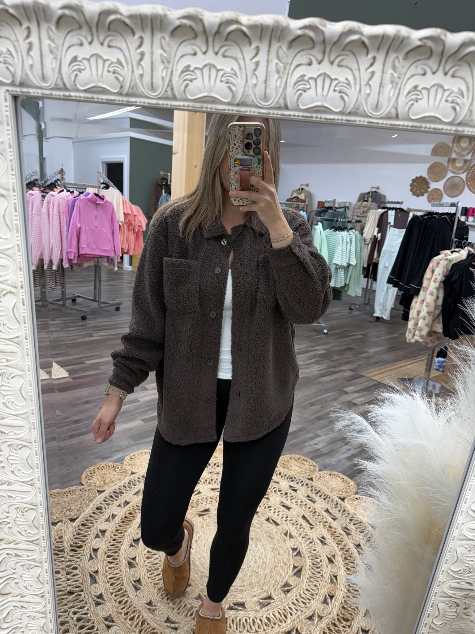 Bring effortless warmth and laid-back style to your cool-weather wardrobe. Designed with a relaxed, oversized fit, this cozy layer features soft sherpa fabric and classic front chest pockets for a touch of utility. Perfect for throwing on over your favorite tee or hoodie, it's the ultimate transitional piece for everyday comfort.