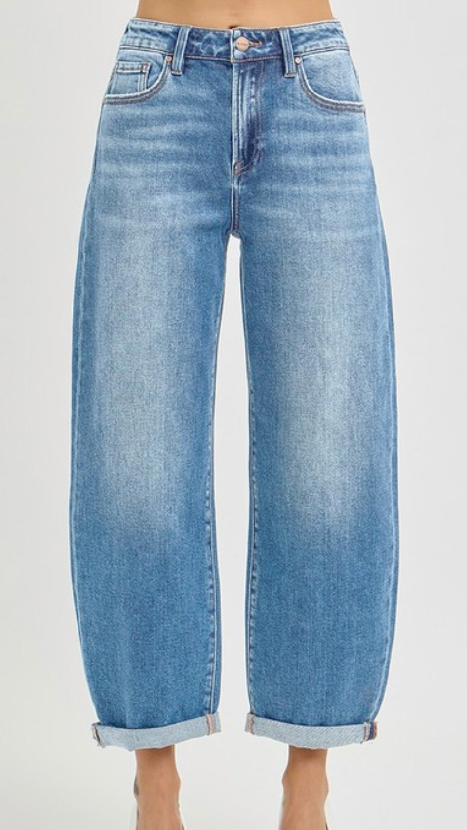 HIGH RISE CROP MILD BARREL JEANS - Rise 10 1/2" | Inseam 26 1/2 (after cuff) 27 1/2" (before cuff) in size 3/26