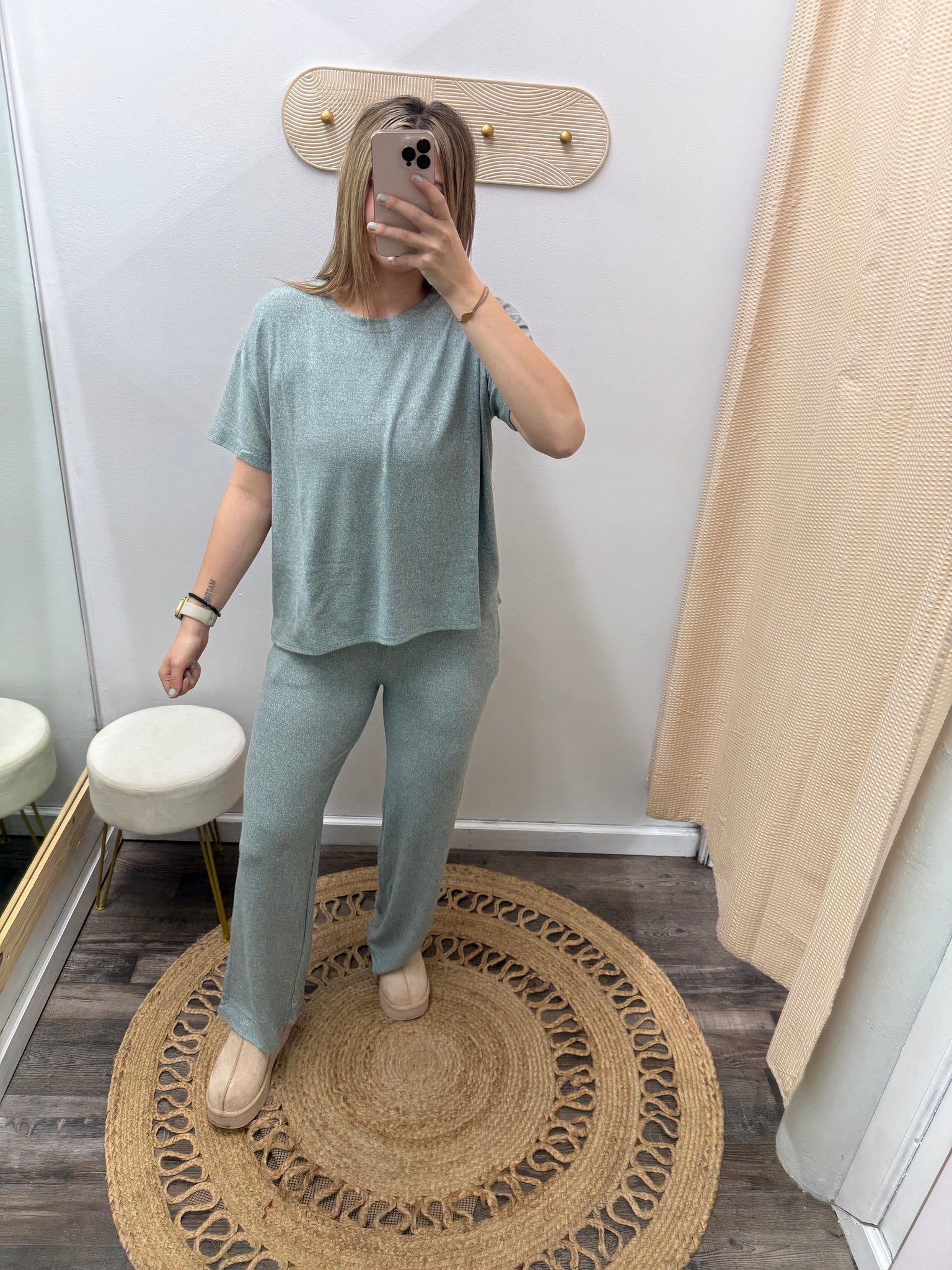 Our extra-soft lounge set is crafted from a brushed, stretchy fabric that feels gentle against the skin. Designed with a true-to-size fit and a naturally relaxed silhouette, it offers effortless comfort without sacrificing style. Perfect for slow mornings, cozy nights, or relaxed days on the go, this set is your new everyday essential.