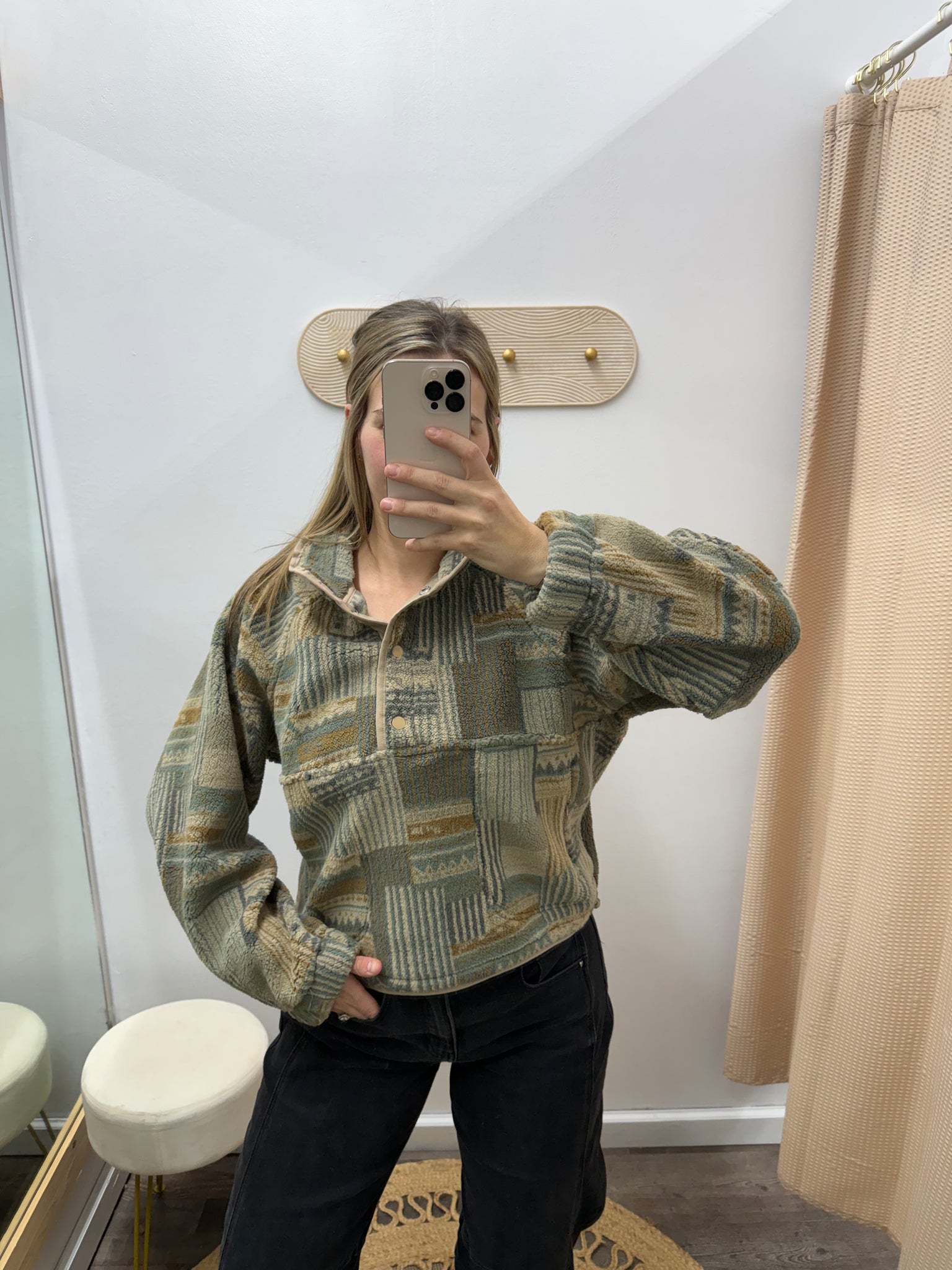 The cutest pullover featuring Aztec details! Made from ultra-soft fleece for cozy comfort. The model is wearing a size small, and it has a relaxed fit with a little room to it. Best Seller from last year!