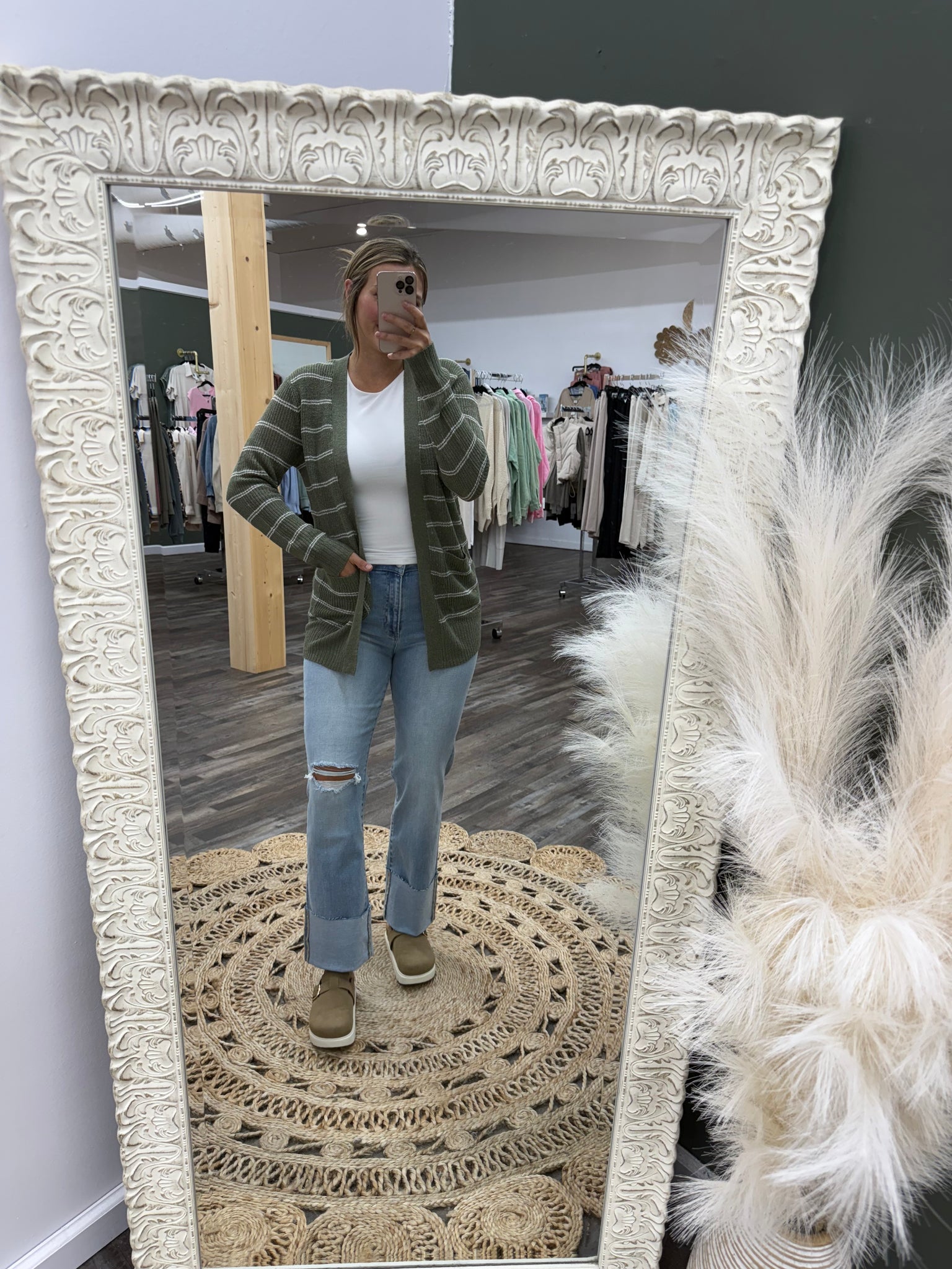 * SWEATER * OPEN CARDIGAN * LONG SLEEVE * DROP SHOULDER * FRONT POCKETS * STRIPED, STRIPES * BELOW THE HIP LENGTH * RELAXED, COMFORTABLE FIT