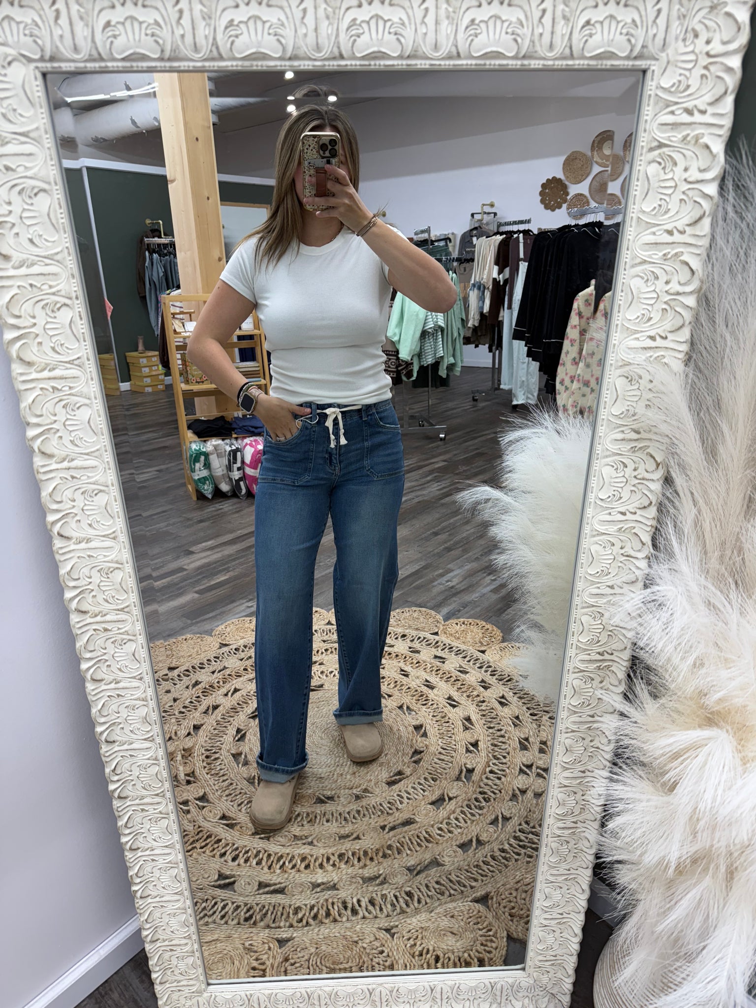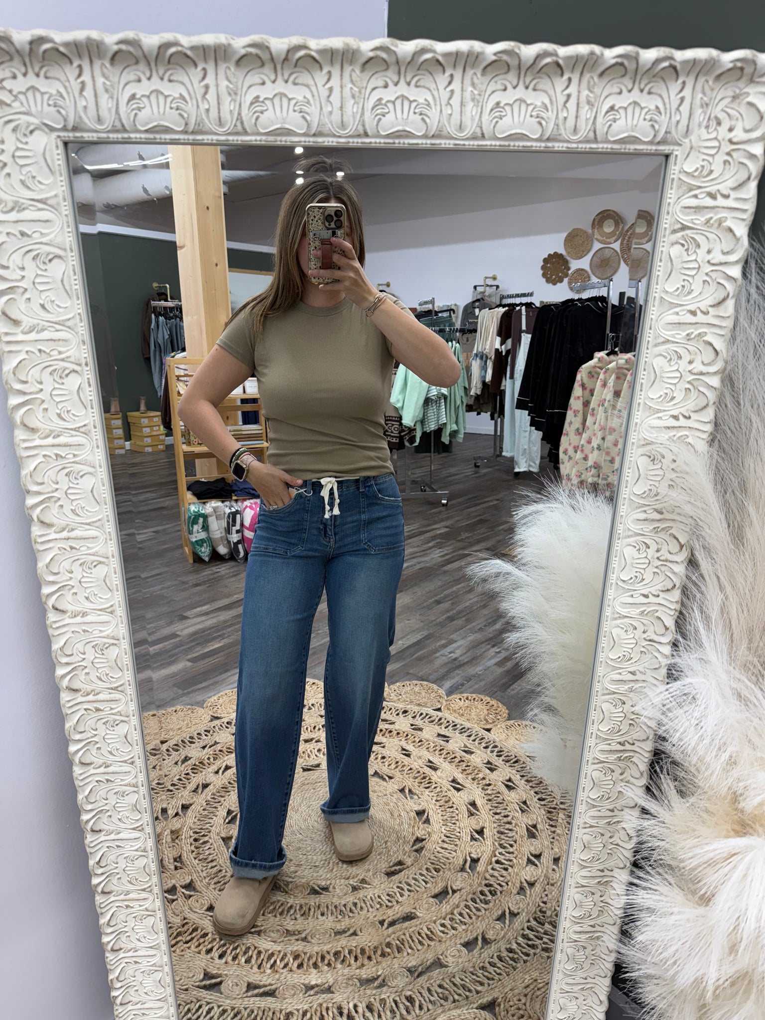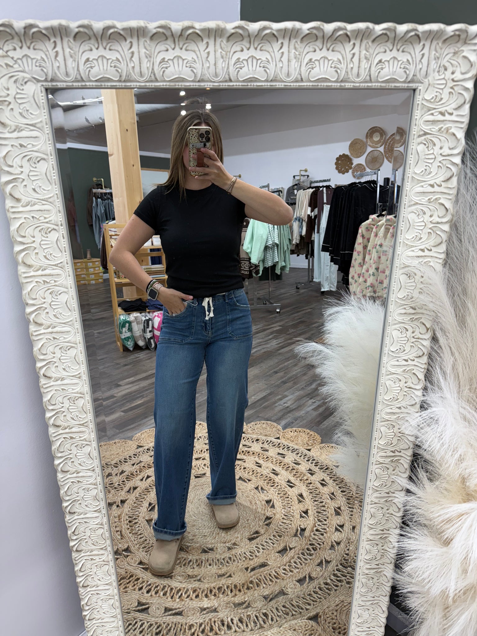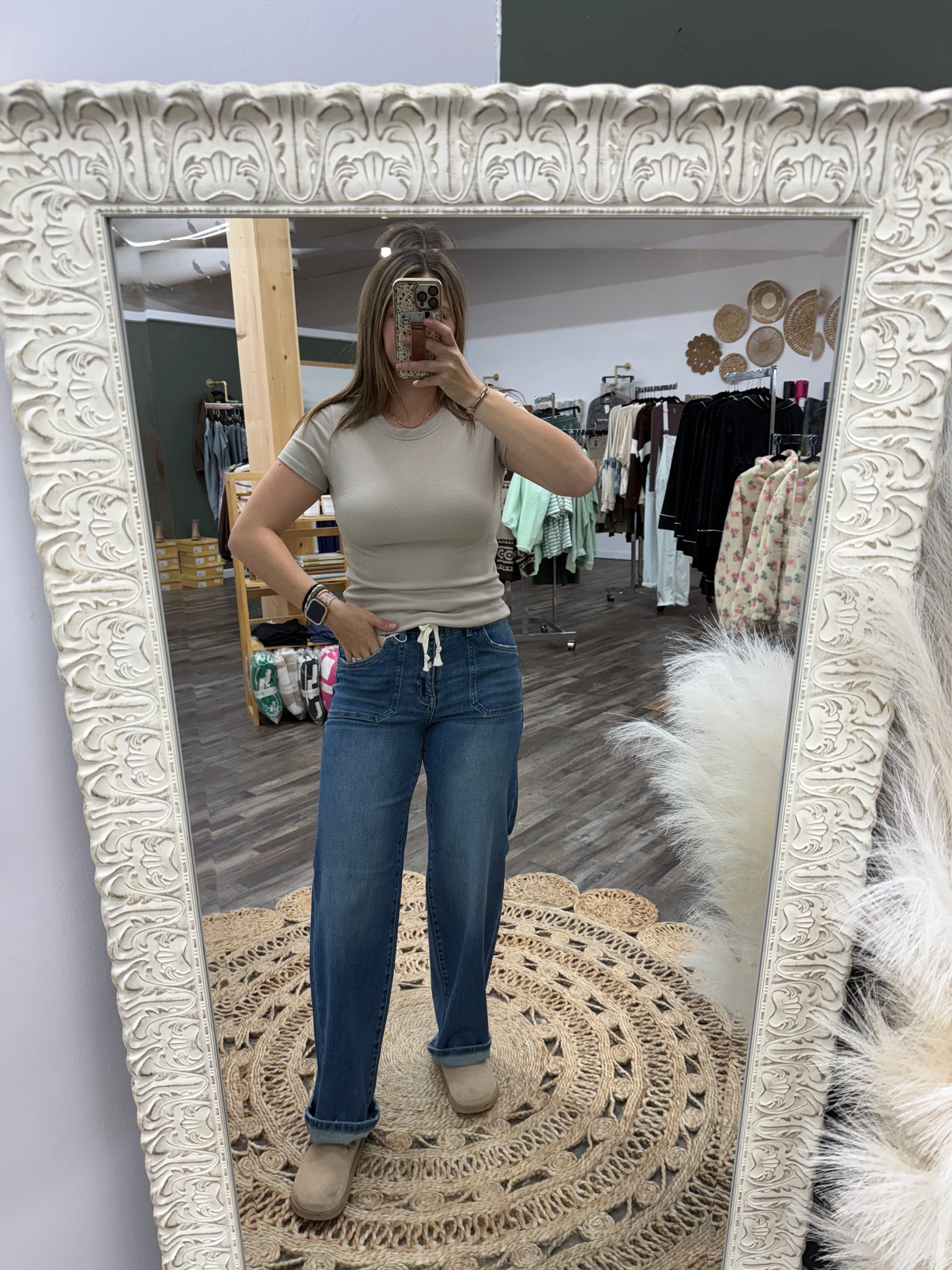 RIBBED KNIT BASIC T-SHIRT 65% RAYON, 3% POLYESTER, 5% SPANDEX
