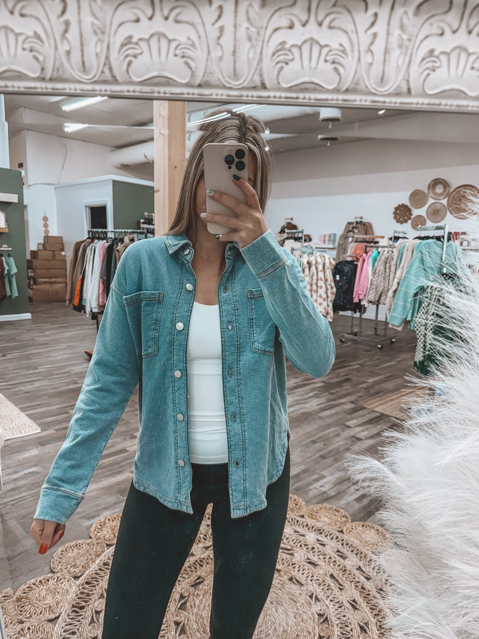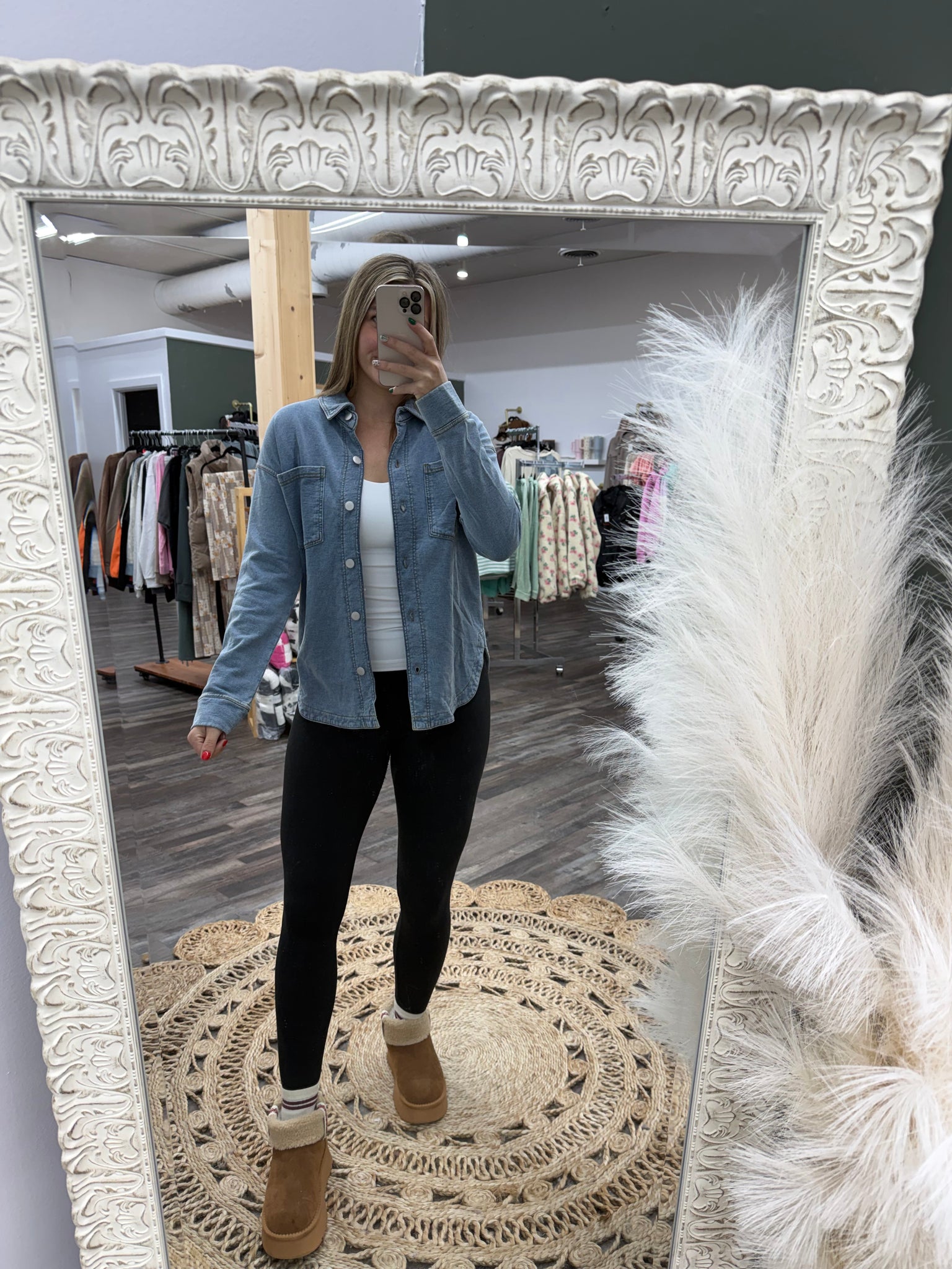 SOFT KNIT OVERSIZED DENIM SHACKET -100% COTTON- model in size small