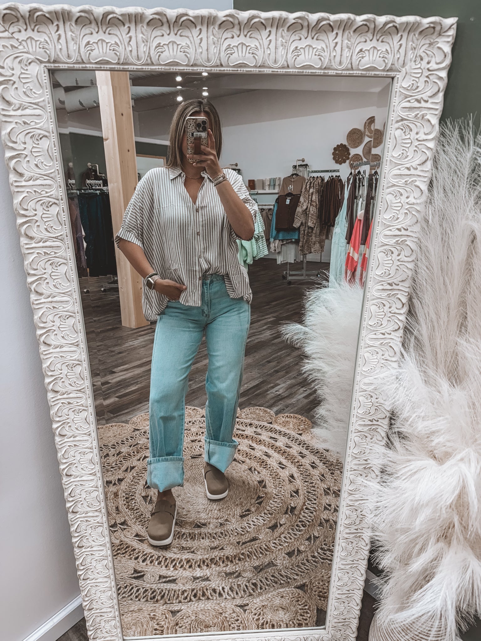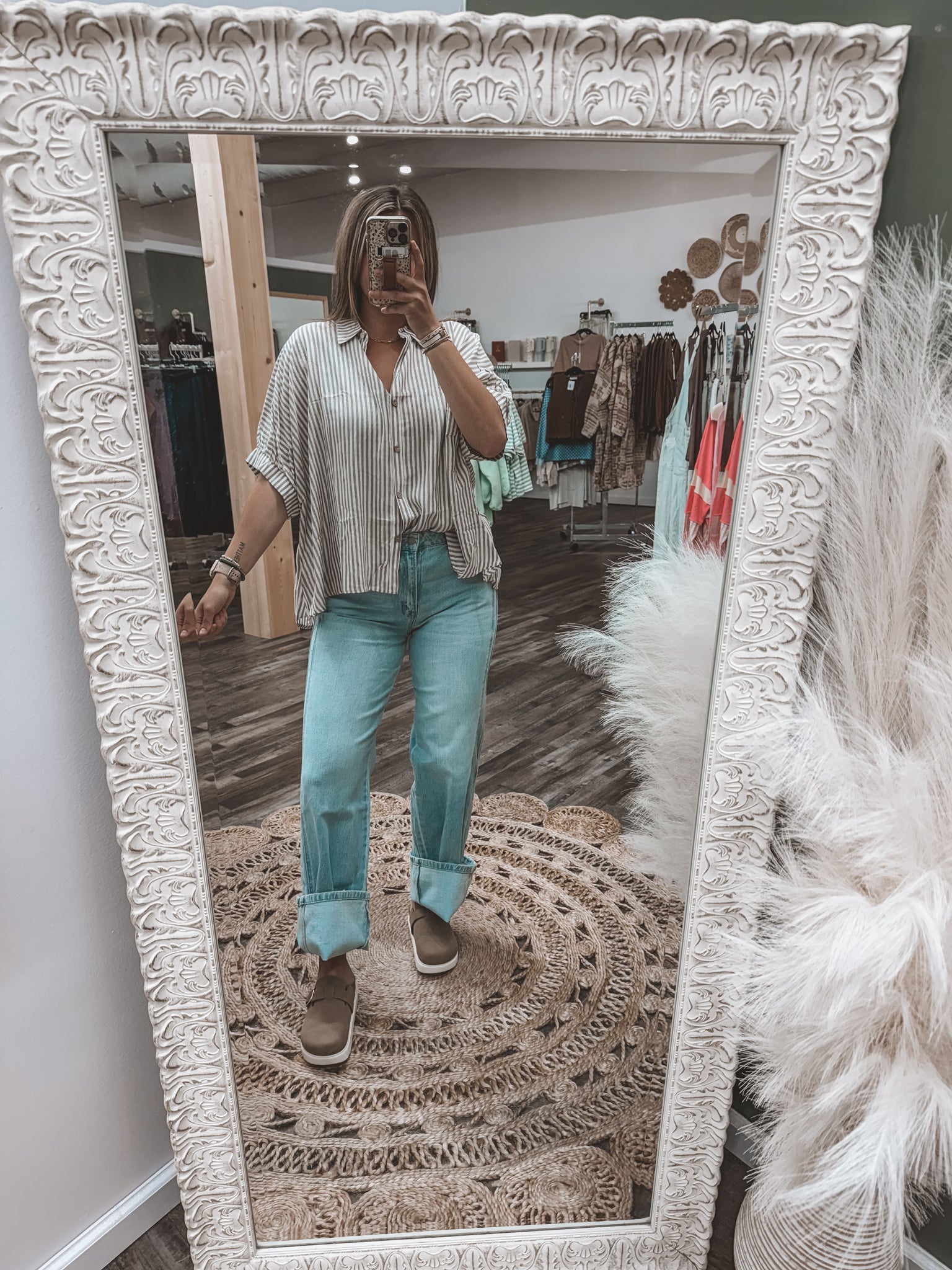 OVERSIZED STRIPED SHORT SLEEVE BUTTON UP SHIRT - 100% RAYON - OVERSIZED FIT TOTAL BODY LENGTH: 25.5", BUST: 67" approx